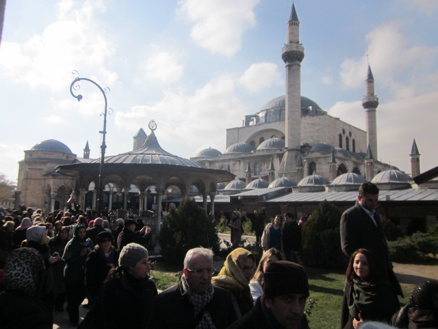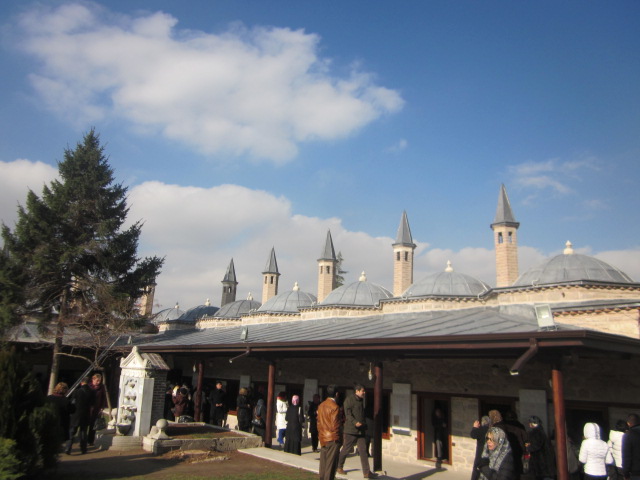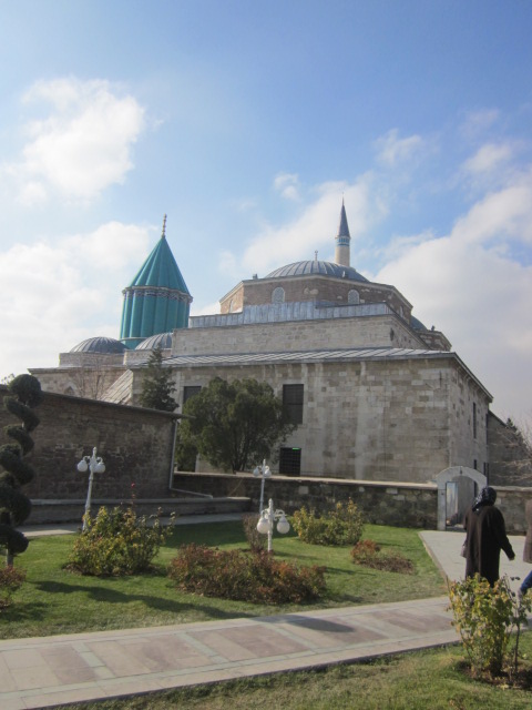 Konya’ya erken saatlerde vardık ve Konya denildiğinde elbette ki ilk durak olarak akla gelen, Konya ile özdeşleşmiş olan Karatay ilçesinde bulunan Yeşil Türbe’ye gittik. Yurdumun dört bir yanından gelen yaşlı, genç, çoluk çocuk ve şifa arayanlar ile müze önünde ve içersinde hatırı sayılır bir kalabalık oluşturduk.