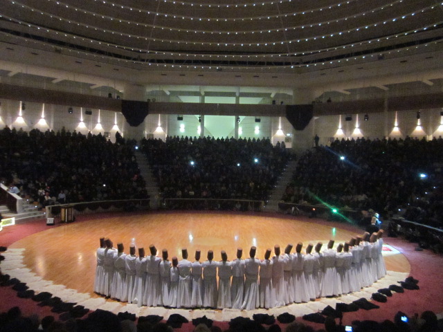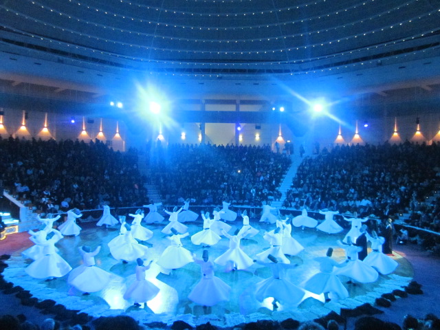 Medreseyi de gezdikten sonra otelimize geçiyoruz. Otelimiz Mevlana Kültür Merkezi’nin hemen yanında bulunan Hilton Garden Inn Konya. Biraz dinlendikten sonra Sema gösterisinin yapılacağı Mevlana Kültür Merkezi’ne kısa mesafeli bir yürüyüş ile ulaştık. İçeri girdiğimizde ilk fark ettiğimiz ışıklandırma ve akustiğin gerçekten çok güzel oluşu.