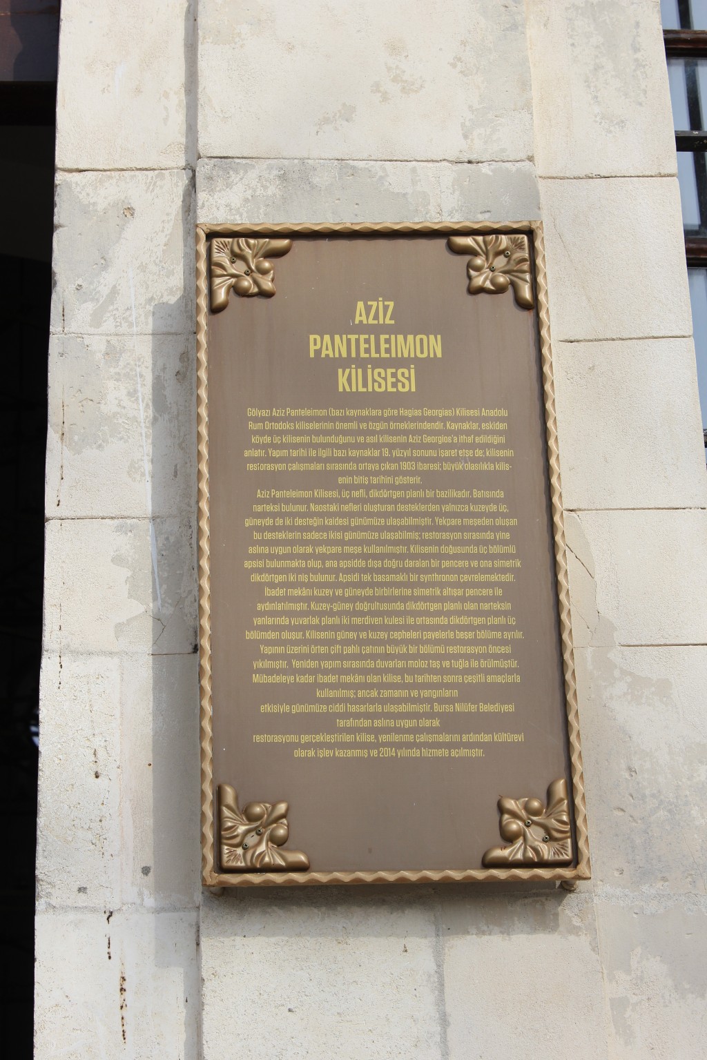 Kahvaltımızı yaptıktan sonra Aziz Panteleimon Kilisesi’ne gittik. Mübadeleye kadar ibadet mekânı olarak kullanılan kilise, daha sonra çeşitli amaçlarla kullanılmış; zamanın ve yangınların etkisiyle hasara uğramış. İlgili Belediye tarafından aslına uygun olarak restorasyonu yapılmış.