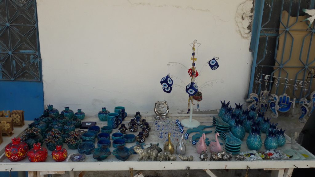 Atölyeden ayrılmadan önce bahçede bulunan standlardan nazar boncuklarımızı almayı ihmal etmedik.  Ayrıca buraya  kadar gelmişken de gözleme yememek olmaz dedik. Otlu/patatesli gözlemelerimizi ve yanında gelen açık ayranlarımızı da bir güzel  yedikten sonra  yola revan olalım dedik.
