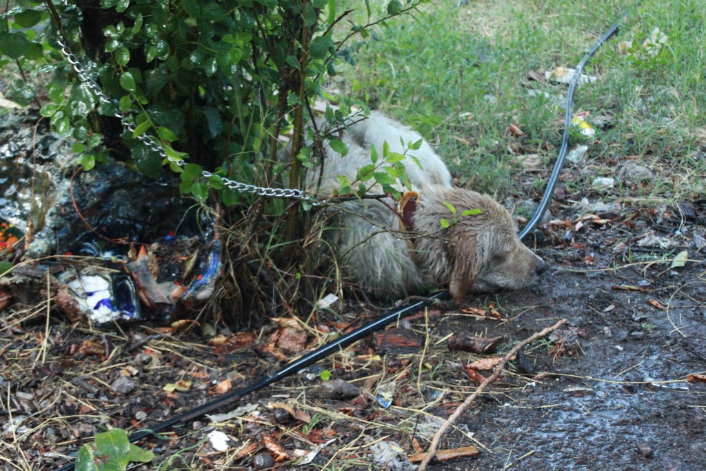 Ya  bu sıcaklıkla aranız nasıl ? dedim. Sıcakla ilgili sıkıntıları olmadığını !!! alıştıklarını söylediler. Ben artık dayanamayarak dışarıya çıktım ve düşen tansiyonumu  su içerek ve bir süre bahçede oturarak yükseltmeye çalıştım.  O arada gözüme bu köpek takıldı . Yukarıdan gelen suyun altında yatarken kendini bu sıcakta  serinletmeye çalışıyordu.
