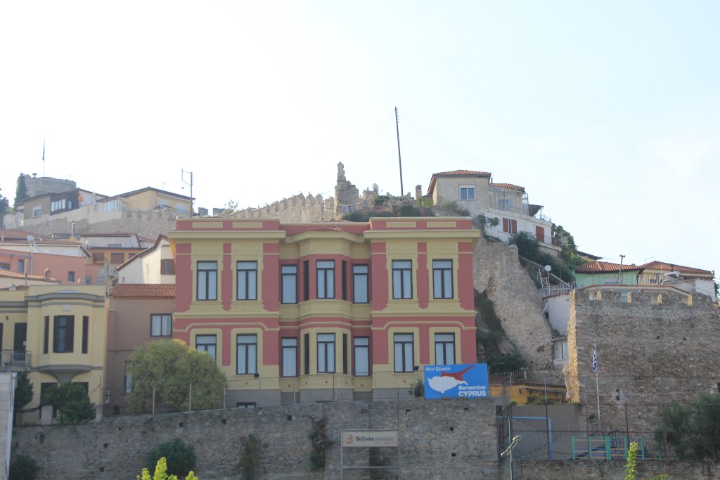 Sokak aralarında ilerlerken bazı evlerin duvarlarının üzerinde ya da otopark alanlarında bir çift göz gördük. Rehberimizin verdiği bilgiye göre 1974 yılında Kuzey Kıbrıs Harekatı sırasında Kavala çok sayıda asker göndermiş ancak bunların çoğu dönmemiş. Bu gidenlerin dönmesini bekleyen hasret gözleri de binalara resmedilmiş. Bir diğeri de Kıbrıs haritaları üzerinde Kuzey Kıbrıs haritası kırmızı yani akan kan şeklinde resmedilmiş. Açıkçası bunları görünce insan kendini biraz huzursuz hissediyor.