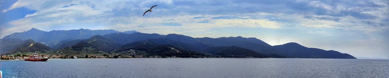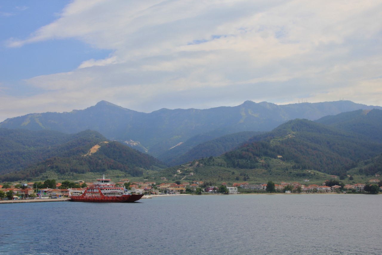 Selanik’ten Keramoti’ye doğru otobüsümüzle hareket ettik. Keramoti’den kalkan feribotla Thassos Adası’nın merkezi olan Limenas’a 40 dakika da ulaştık. Yolculuk sırasında martılar feribota eşlik ettiğinden ve güzel fotoğraf kareleri yakalamaya çalıştığımızdan bu süre nasıl geçti anlamadık.