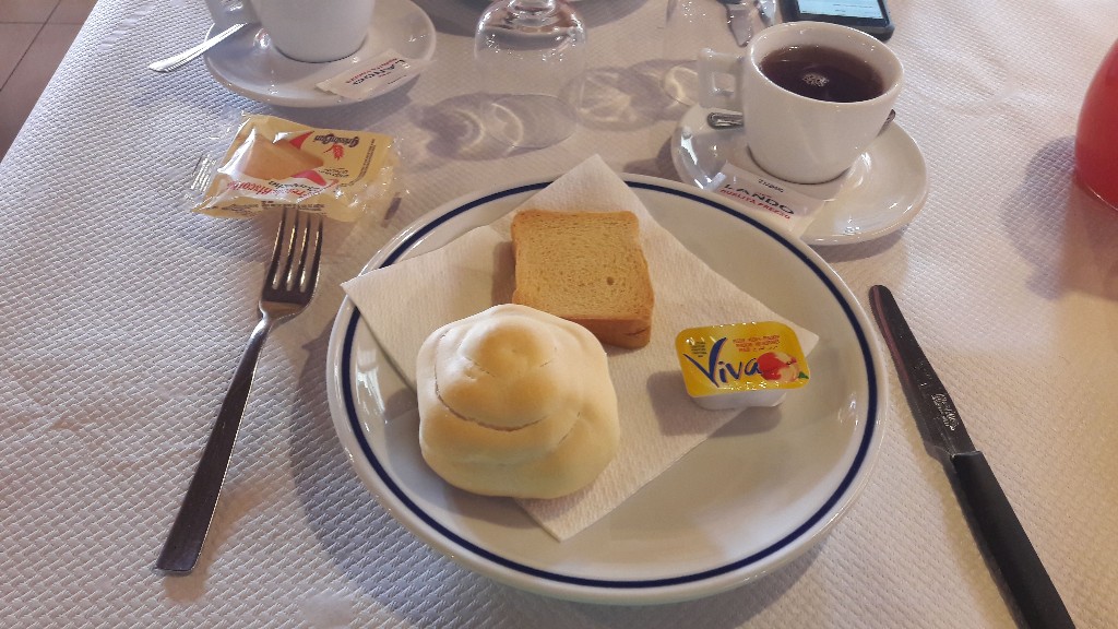 Dinleme zamanı geldi ve nihayetinde otelimize gittik. Yorgunluk nedeniyle nasıl sabah oldu ve ne zaman kahvaltı tabağı önümüze geldi bilemedik. Kahvaltılarımız ne açık büfe ne kapalı büfe ne de köy kahvaltısı tadında idi. Aşağıdaki fotoğrafta gördüğünüz tabak içeriği bizim açımızdan sabahları yeterli geliyordu. Yemek konusunda çok farklı lezzetlere zaten açık olmadığımızdan yurtdışına çıktığımızdan biz sorun yaşamıyoruz J