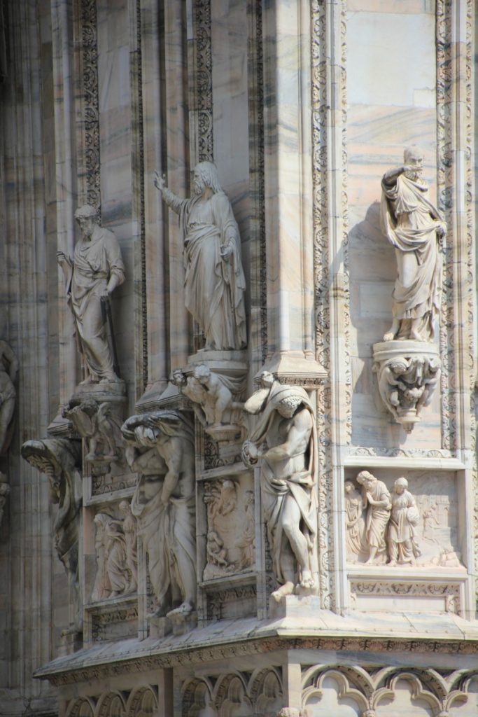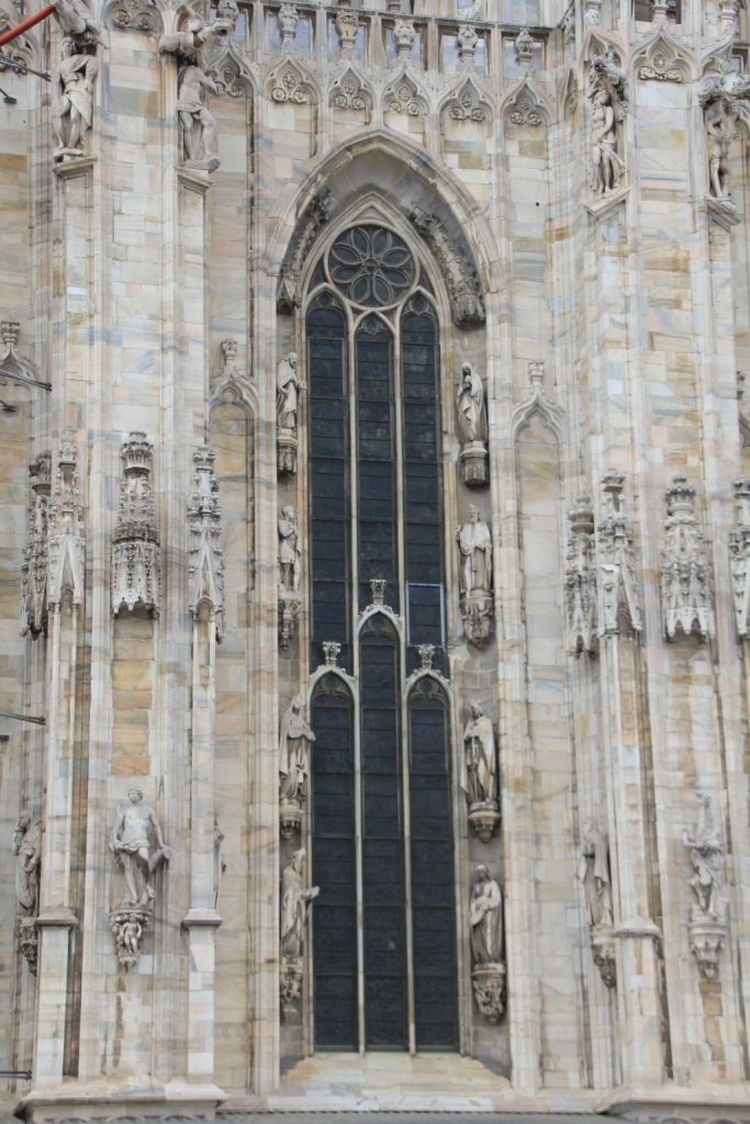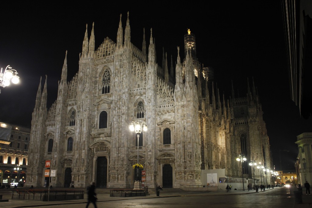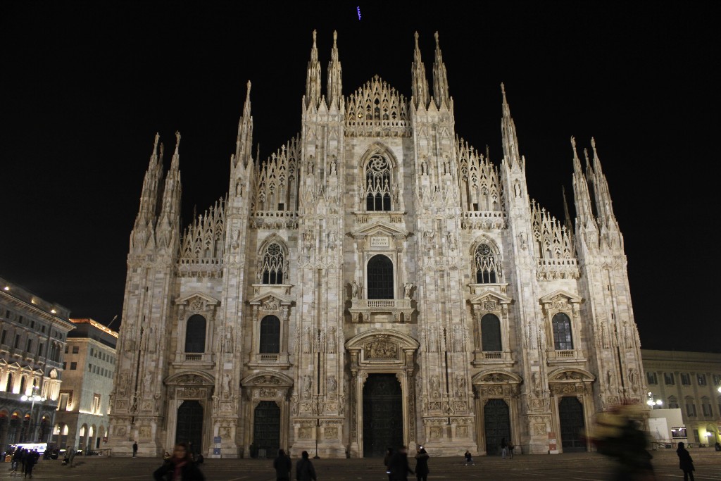“Milano bir hanımefendi gibidir. Güzel olmayı bilir, bakmayı bilmek gerek.” demiş yazar Donatella Piatti. Biz de az çok bakmayı bilen insanlar olduğumuzu düşünerek Milano’nun tam kalbinde yer alan, Duomo Meydanı’na da adını veren Duomo Katedrali’ni görmeye gittik. Küçük bir geçitten geçtiğimiz anda karşımızda tüm ihtişamıyla beliren bu katedral hem gündüz hem de gece görülmesi gerekli diye kendimize not düştük. Kaynaklarda katedralin bitiriliş tarihi ile ilgili farklı bilgiler yer alıyor. Genel olarak, yapımına 1386 yılında başlandığı, 1418 yılında kutsandığı, inşaatın 1813 yılına kadar devam etmekle birlikte katedralin son kapısının 1965 yılında takıldığı bilgilerinde ortak görüş yer alıyor. Sonuç itibariyle yapım süreci çok uzun sürmekle birlikte karşımızda tüm ihtişamıyla duran katedrali görebildik.