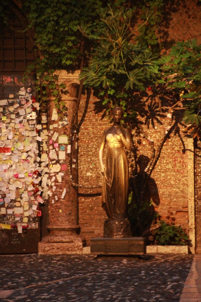 Milano gezimiz bittikten sonra akşam geç saatlerde Milano ile Venedik arasında yer alan ve Romeo ve Juliet’in şehri olarak bilinen Verona şehrine gittik. İngiliz yazar William Shakespeare’in kurgusal eserinin karakterlerinden Romeo ve Juliet’in gerçek hayatta bir evi nasıl olur ve yıllardır ziyaretçi akınına uğrayan bir merkez haline nasıl dönüşür der ve merak ederseniz Casa di Giullietta’yı ziyaret etmeniz gerekiyor. Kurgu da olsa Juliet’in bu evde yaşadığına inanılıyor. Her ne kadar serenat yapılan bir balkonu olmasa da ticaret mantığı ile serenat sahnesi için eve sonradan balkon bile eklenmiş. Romantik anlar yaşayalım, anımız olsun diye evin balkonunda fotoğraf çektirelim derseniz bu size kalmış. Biz böyle bir anımız olmasa da olur diyerek bir kare fotoğraf çekerek sokak aralarında keyif sürdük.