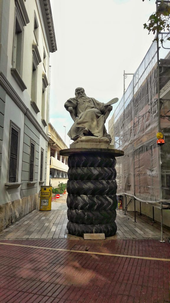 Barcelona’dan yaklaşık iki saat süren ve InterRail biletimizle yaptığımız keyifli tren yolculuğumuzdan sonra Figueres istasyonunda indik. Figueres küçük bir yer, müzeyi bulmak zor olmuyor yönlendirme tabelaları da var. Barselona’ya gitmeden önce müze giriş biletini aldığımızdan giriş saatimizin gelmesini beklerken çevreyi dolaşıp müzenin hemen yanı başındaki kafe de vakit geçirdik.