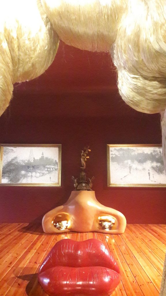 Mae West’in Çehresi adlı eser…Mae West 1980’de yaşamını yitirmiş, dünyaca ün kazanmış Amerikalı bir sinema-tiyatro oyuncusu.. Salvador Dali, 1934-35 yılları arasında hem dostu hem de hayranı olduğu Mae West’in yüzünü bir oturma odası haline getirmiş. Dali Mae West’in yüzü, dudaktan bir koltuk, burundan bir konsol, iki adet bulutlu bir havada Seine Nehri manzaralı tablolar ve perdeden sarı saçlar. Müze de bu keyifli esere yukarıdan bakmak için merdiven çıkılıyor ve büyüteç altında bakılıyor.